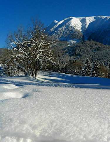 Aussichtsreiche Schneeschuhtour für konditionsstarke Wanderer in der Hochsteiermark: Tief verschneite Wälder, weite Lichtungen und unbefahrene Forstwege oberhalb des Aflenzer Tals im Hochschwabgebiet. Eine Rundwanderung für Genießer mit Start beim Lift auf die Aflenzer Bürgeralm.
