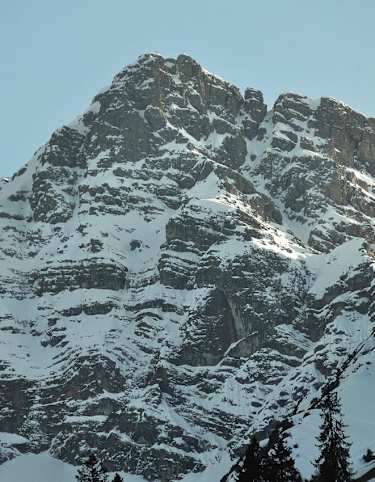 Los geht es bei der Talstation der Nebelhornbahn. Hier links halten und am Rande der Rodelbahn aufsteigen. In Serpentinen geht es steil den Berg hinauf. Wer Schneeschuhe mit Aufstiegshilfe hat, ist hier klar im Vorteil. Parallel zur Seilbahn führt die kurvige Strecke im Bergwald hinauf. Wer sich diesen mühseligen Teil sparen will, gondelt bis zur Station Höfatsblick hoch. Am Rande der Abfahrt weiter aufsteigen bis zum Höfatsblick. Steil geht es in der Gipfelmulde weiter bergauf. Nun die Piste zügig hinüber zum Koblatlift queren. Es geht oberhalb einer Hütte vorbei, die sich zwischen der Gipfelbahn und dem Koblatlift befindet. Weiter geht es am Fuß vom Westlichen Wengenkopf. Steil bergauf steigen. Links befindet sich der Östliche Wengenkopf. Dort oben verläuft auch der legendäre Hindelanger Klettersteig.