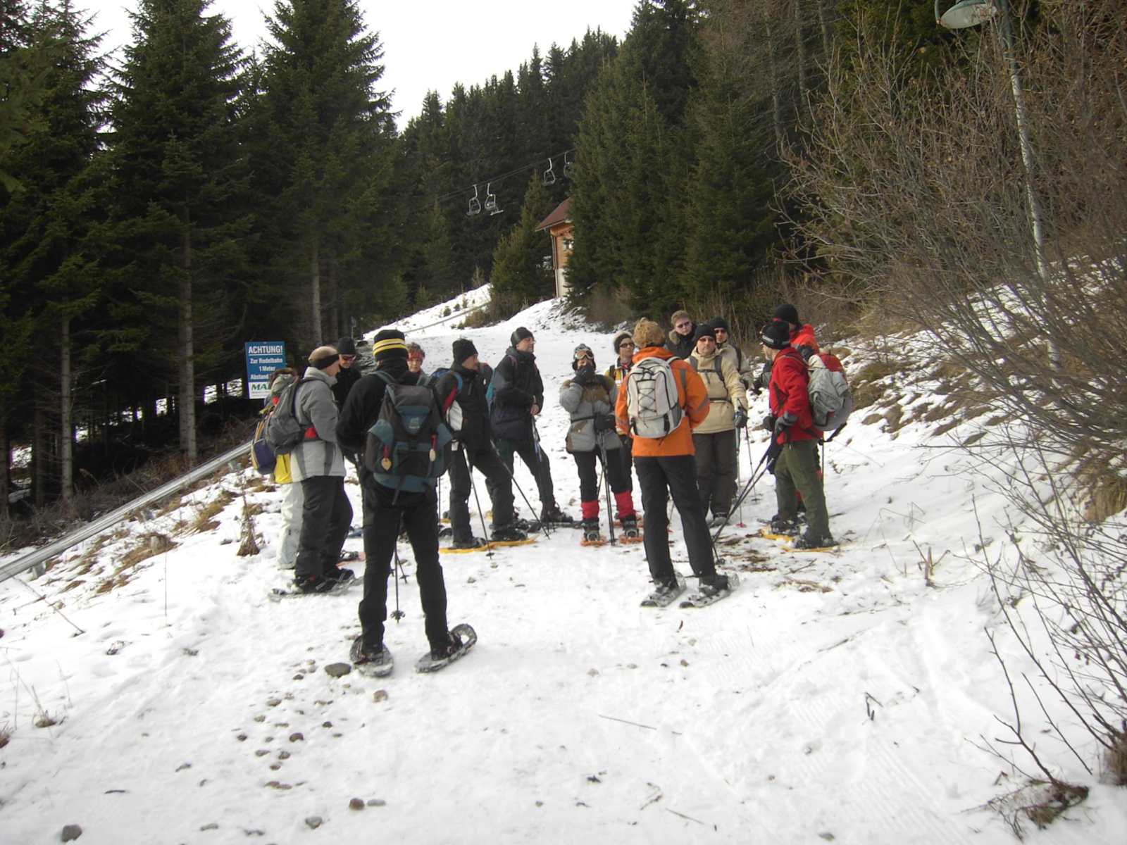 Klippitztörl Schneeschuhwanderer hinter Hotel Alpengasthof Hochegger Foto: Tourismusbüro Wolfsberg