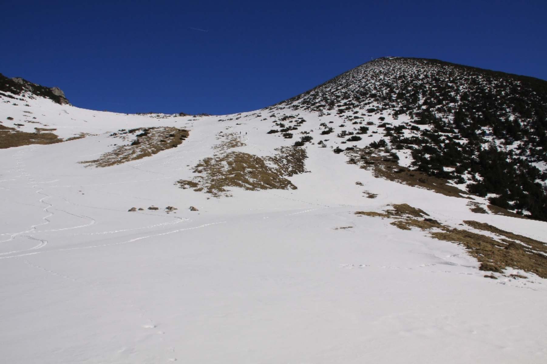 Im Abstieg laufen wir durch die Mulde direkt zur Bergwachthütte hinunter, dann führt uns der Weg über die Priener Hütte zurück zum Parkplatz.