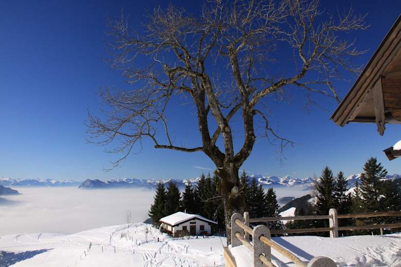 Am besten gehen wir an kalten Wintertagen zum kleinen Gipfel, wenn der Schnee knirscht und glitzert, die Bäume wie in Watte gepackt sind und die Sonne uns von einem stahlblauen Himmel anstrahlt.