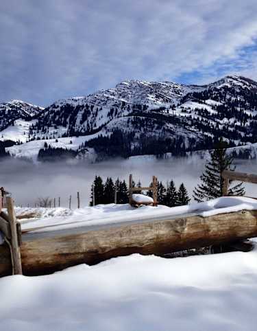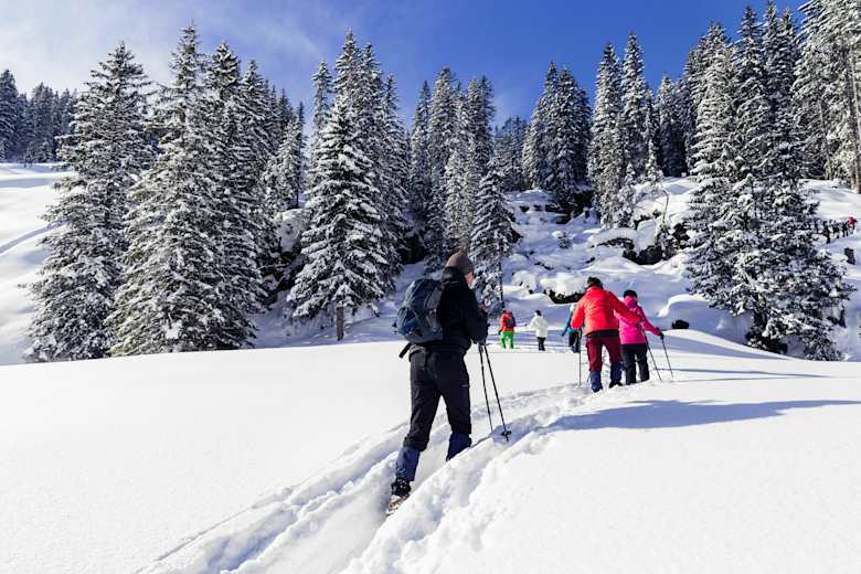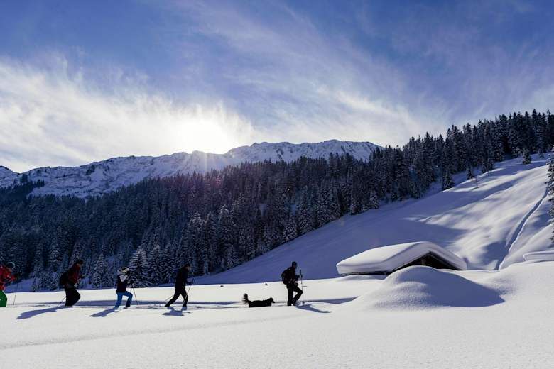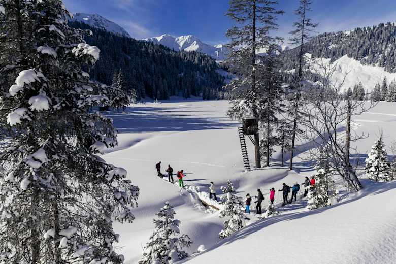 Beeindruckende Schneeschuhwanderung in das schneereiche Schwarzwassertal im Vorarlberger Kleinwalsertal.