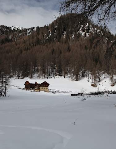 Die mittelschwierige Schneeschuhwanderung durch das Altfasstal in den Pfunderer Bergen (Südliche Zillertaler Alpen) ist wegen ihres einfachen Streckenprofils eine ideale Tour für Einsteiger und Naturgenießer. Vom Parkplatz am Beginn des Tales (1.606 m) wandert man durch den verschneiten Wald bis zur Großberghütte (1.640 m) und weiter durch das offene Altfasstal mit all seinen kleinen Almhütten. Ein landschaftliches Juwel in Südtirol.