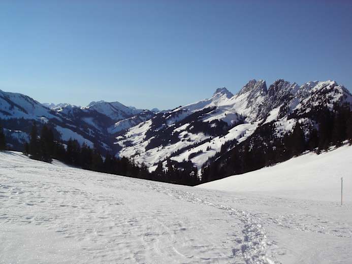 Nach einem kurzen, aber steilen Anstieg Richtung Bäderhore gelangt man ins Gebiet Buufeli. Von dort geht es auf fast ebenem Weg durch dichten Tannenwald hinüber zum Bäderberg. Nach der Waldpassage darf man sich über das prächtige Panorama in die Berner Alpen und in die nahen Gastlosen freuen.