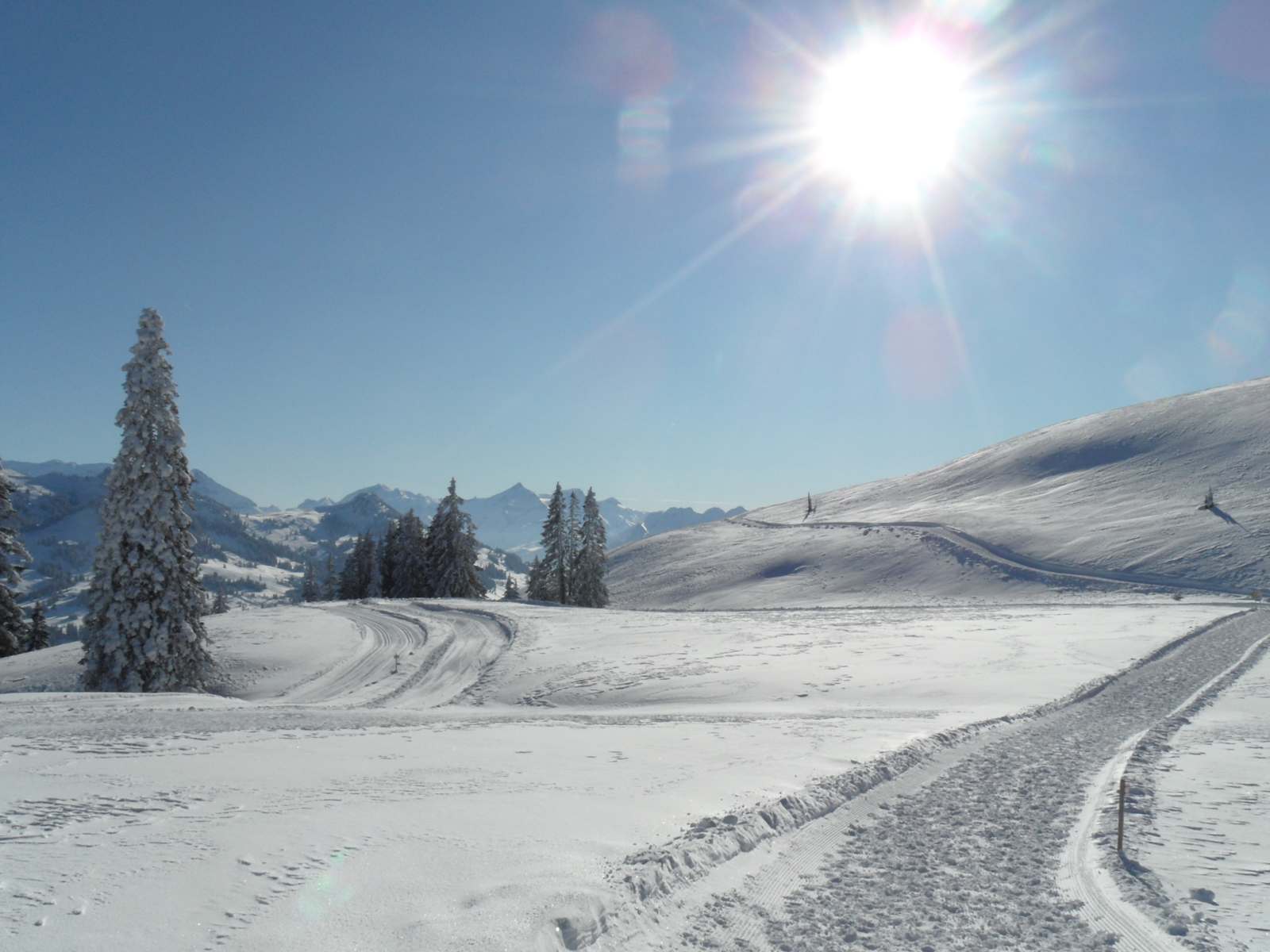 Einfache aber landschaftlich sehr schöne Schneeschuhwanderung im Berner Oberland von Zweisimmen zum Vordere Hüsliberg auf das Schiltenegg (1.790 m) und über den Hindere Hüsliberg zurück zum Ausgangspunkt. Während der Tour hat man einen wunderschönen Blick ins Saanenland und auf die umliegenden Gipfel der Berner Alpen.