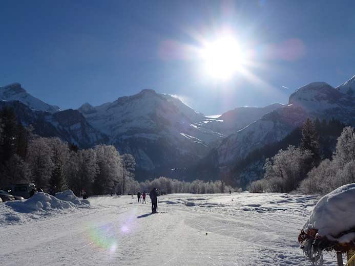 Besonderen Charakter erhält diese Tour durch den längeren Abstieg und das Naturschutzgebiet am Lauenensee, das alle Besucher in seinen Bann zieht. In herrlicher Winterlandschaft kann man hier das Panorama mit den umliegenden Gipfel der Berner Alpen ausgiebig geniessen.