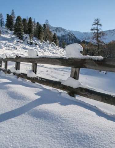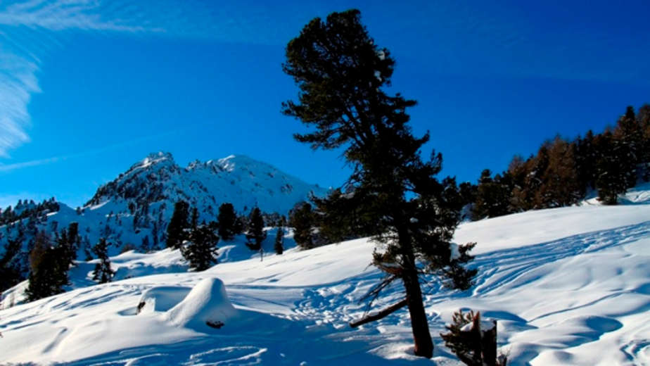 Vom rosa Schild "Schneeschuhwanderweg Nummer 5" an der Bushaltestelle in Siviez wandert man hinauf Richtung "Les Grosses Pierres". Ab hier nimmt die Steigung deutlich zu bis man auf 2.013 m den höchsten Punkt der Tour erreicht.
