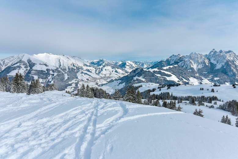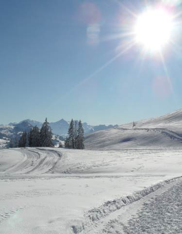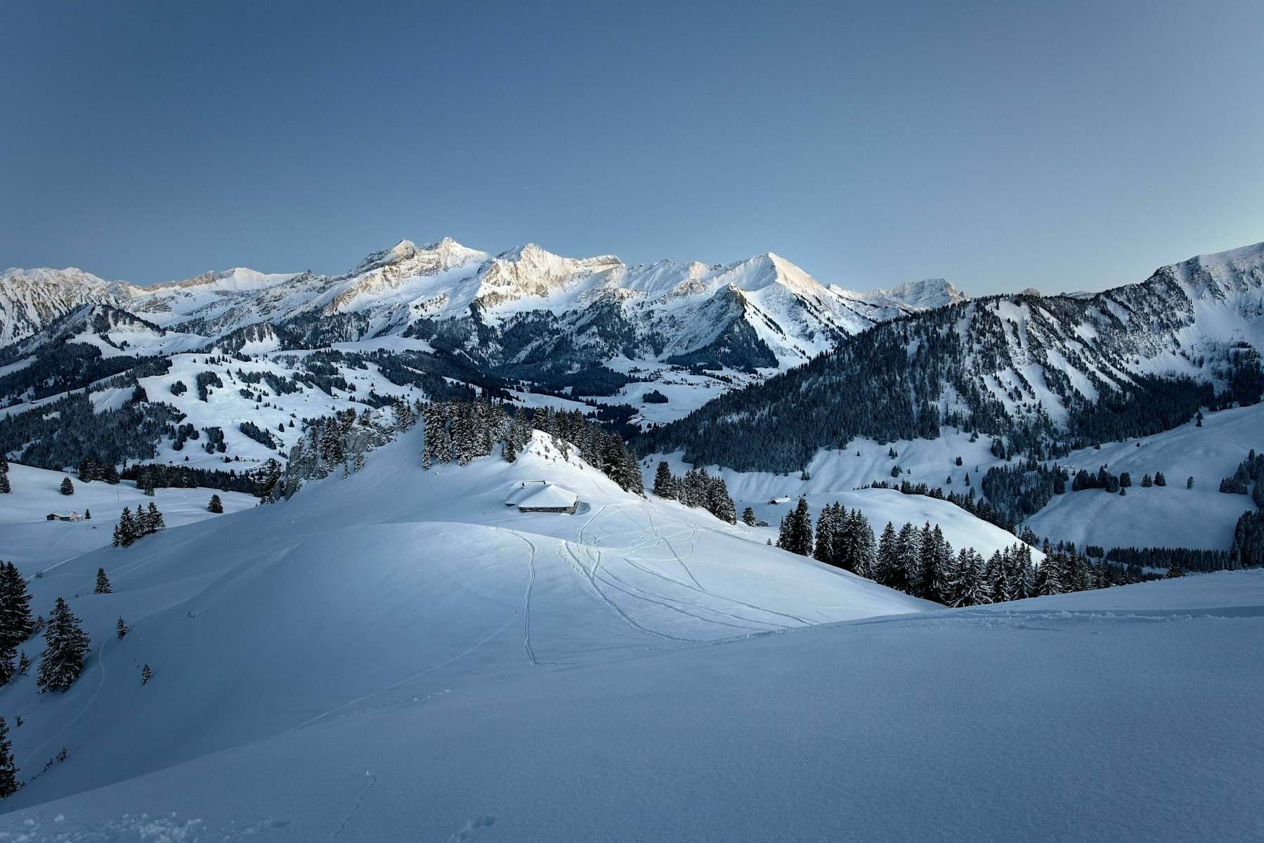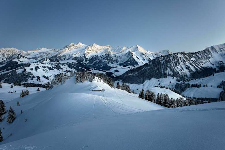 Die sanften Hänge, weder zu lang noch zu kurz oder zu steil, des Pays-d'Enhaut stellen eine ideale Destination für Schneeschuhläufer-Amateure dar.