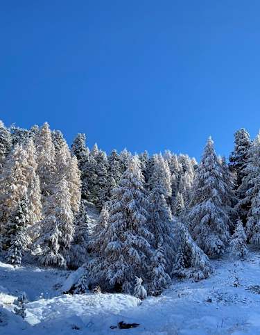 Der Aufstieg verläuft entlang der Langlaufloipe und führt mit jeder Schlaufe zu einer neuen Entdeckung. Unterwegs geniesst man eine grandiose Aussicht auf das Hongrin Tal, den Mont d'Or, den Mont-Blanc, die Aï Türme oder den Piz Chaussy und auf deren Umgebung.