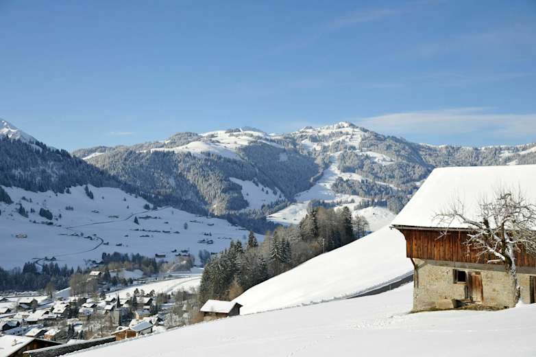 Über 65 km Schneeschuhpisten erwarten die Wanderer im Gebiet des Pays-d’Enhaut (Waadtländer Oberland) / Château-d’Oex – Les Mosses.