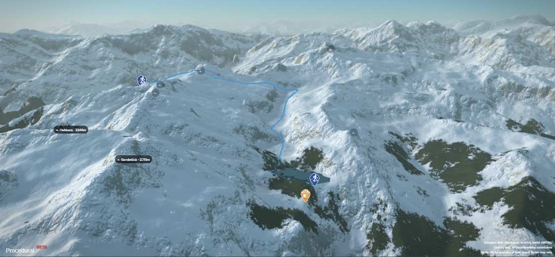Lohnende Schneeschuhwanderung vom Skigebiet der Sportbahnen Elm über den Vorder Blickstock (2.405 m) vorbei am Mittler Blistock und den Hinteren Hübschböden zum Stausee Garichti. Das alpine Gelände und die Einsamkeit machen diese Tour im Glarnerland zu etwas ganz besonderem.
