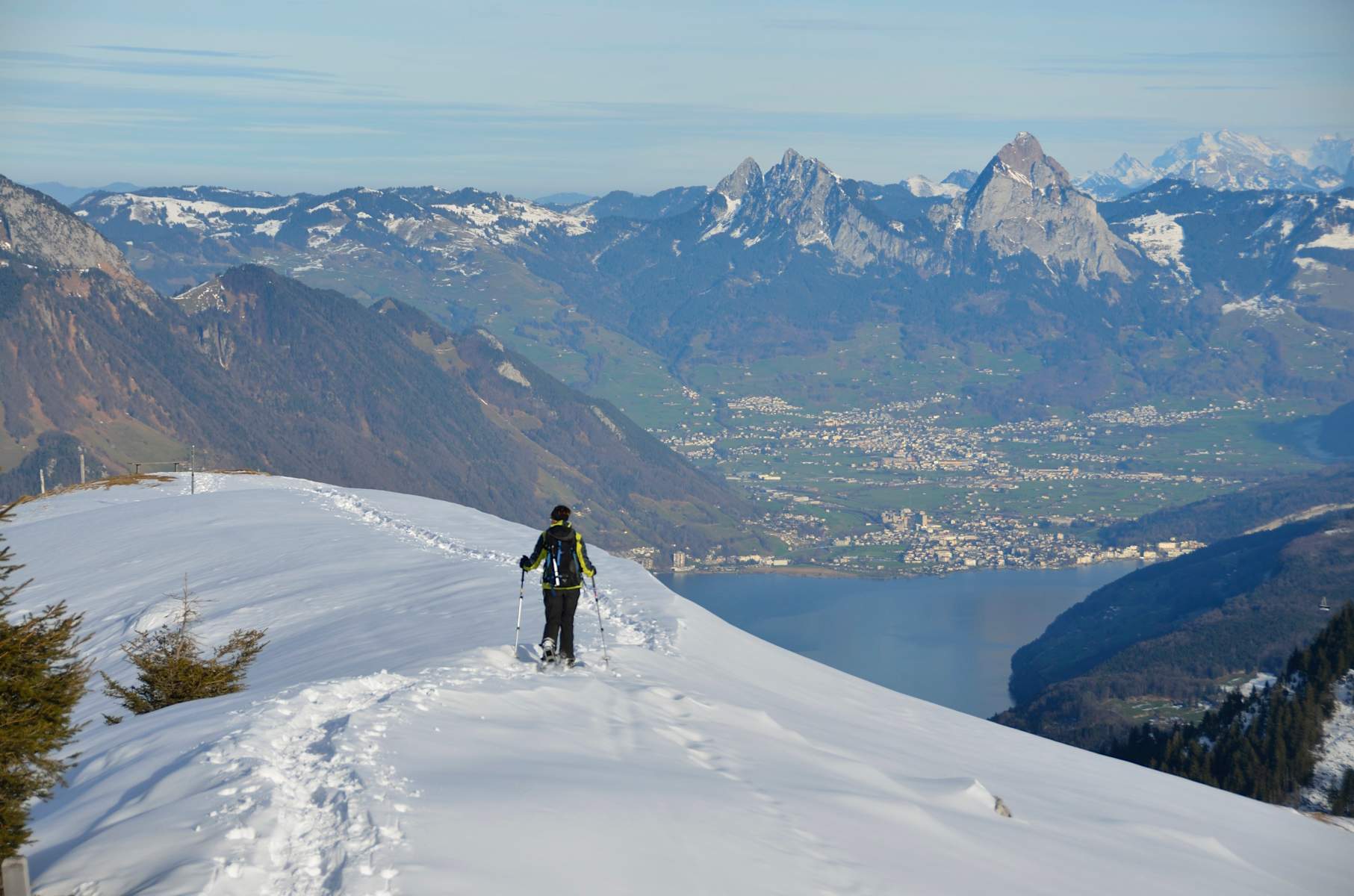 Die Twäregg (1.498 m) ist ein grandioser Aussichtsgipfel mit fantastischem Panoramablick auf den Vierwaldstättersee, die beiden Mythen, Königin Rigi und den Brisen. Der leichte Schneeschuhtrail startet bei der Bergstation Klewenalp und führt von dort auf markierter Route zu dem beliebten Schneeschuh-Gipfel.