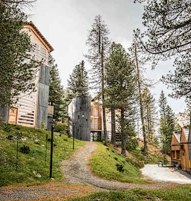 Nach der Bergfahrt mit dem Aineck Sessellift geht es vorbei am Speichersee zum Teuerlnock. Von dort stetig bergab zur Laußnitzhöhe und durch lichte Lärchenwelder bis zur Neuen Bonner Hütte, die auch im Winter bewirtschaftet ist.