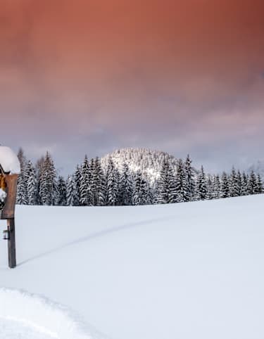 Vom Steinermandl auf Schneeschuhen zur urigen Naturfreundehütte am Zettersfeld. Nach der Hütteneinkehr gut gestärkt, geht es weiter zum Faschingalm-Parkplatz und von dort mittels Taxi retour zum Ausgangspunkt an der Talstation des Lienzer Zettersfeld (in Gaimberg).