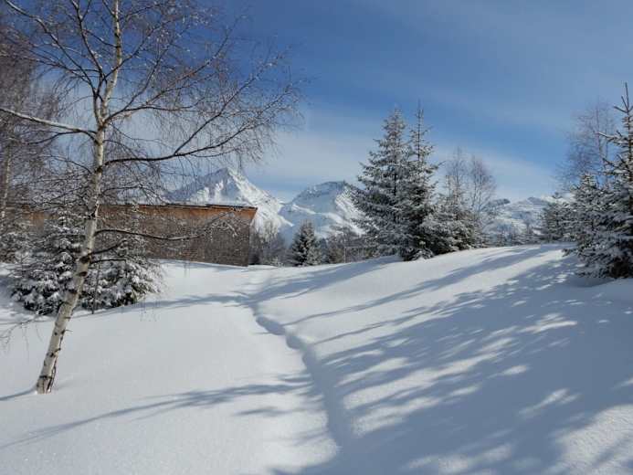Den Aufstieg nach Mompé Medel nehmen wir gemütlich, denn er ist recht steil. Im Dorf angelangt packen wir die Schneeschuhe kurz auf, bis wir die Bar La Scurslada erreichen. Weiter aufsteigend präsentiert sich uns die Landschaft offen und weit, mal kommen wir an einzelnen Tannen oder Birken vorbei, dann wieder an einem Maiensäss. Vor der Anhöhe Stagias teilen wir den Aufstieg ein Stück mit den Schlittlern, es ist also Vorsicht geboten. Bei der Academia Vivian machen wir Rast, wir lehnen uns an die warme, von der Sonne aufgewärmte Holzwand und schauen was unser Rucksack so her gibt. Wenn es ein Fläschchen Wein dabei hat: umso besser! Denn wir lassen uns an diesem schönen Ort Zeit.