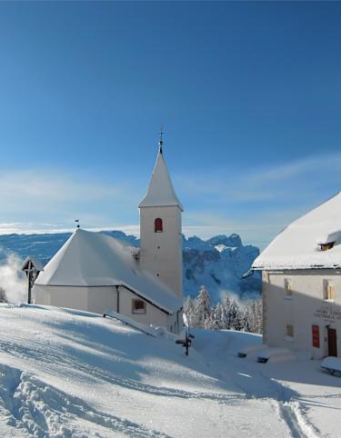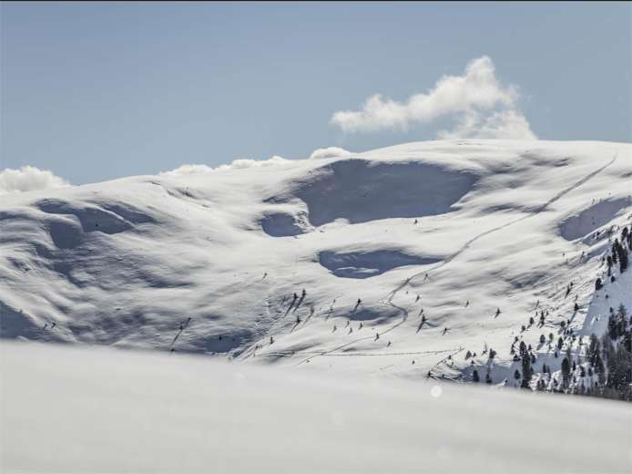 Mehrere Einkehrhütten haben auch im Winter auf der Rodenecker- Lüsner Alm geöffnet.