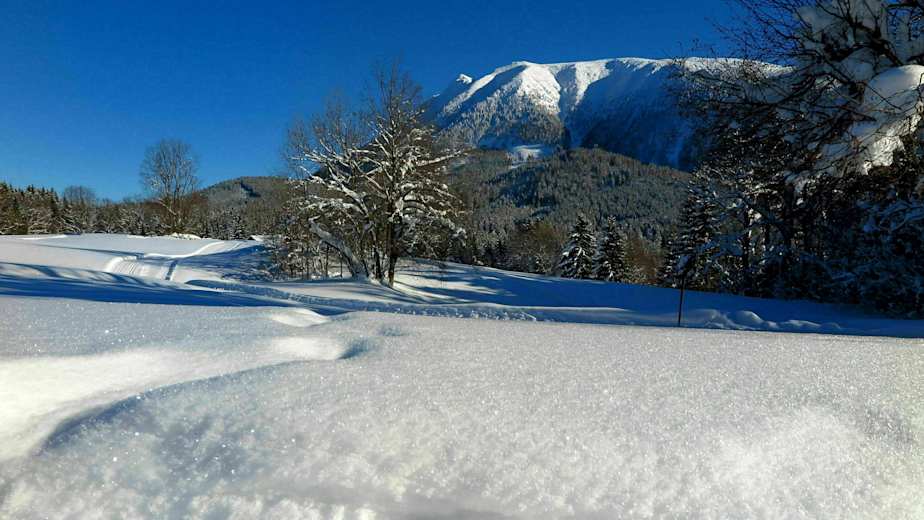 Rund um Lackenhof in den Ybbstaler Alpen in Niederösterreich gibt es zahlreiche schöne Schneeschuhwanderungen. Eine davon führt in den Kesselgraben. Ausgangspunkt ist der Sonnhof in Lackenhof.