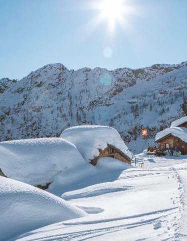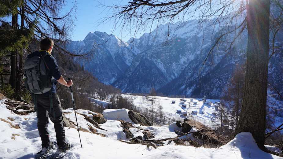 Eine mäßig schwierige Schneeschuhtour in Campo Vallemaggia, bei der man die alpine Natur- und Kulturlandschaft des Tessins erkunden kann. Abseits der belebten Straßen und der gut besuchten Skigebiete, taucht man bei dieser Rundwanderung in eine magische Winterlandschaft ein.