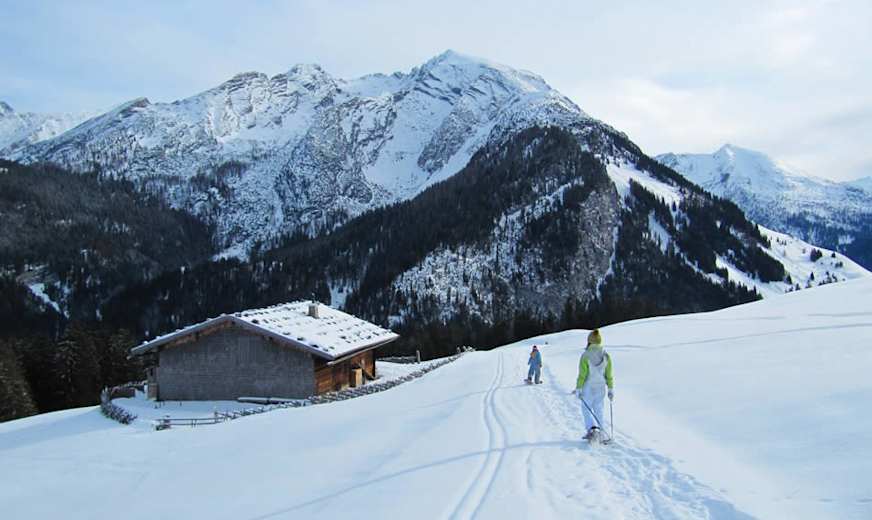 Mit Schneeschuhen über die Kallbrunnalmen im Naturpark Weißbach bei Lofer Foto: Salzburger Saalachtal Tourismus