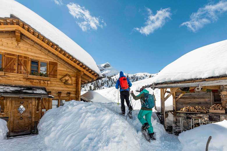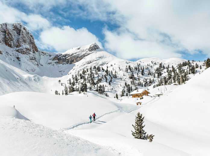 Die Rossalm liegt auf 2.164 m unterhalb der Roten Wand mitten in den Pragser Dolomiten. Im Winter erreicht man die Alm am besten mit Schneeschuhen ausgehend vom Parkplatz Brückele.