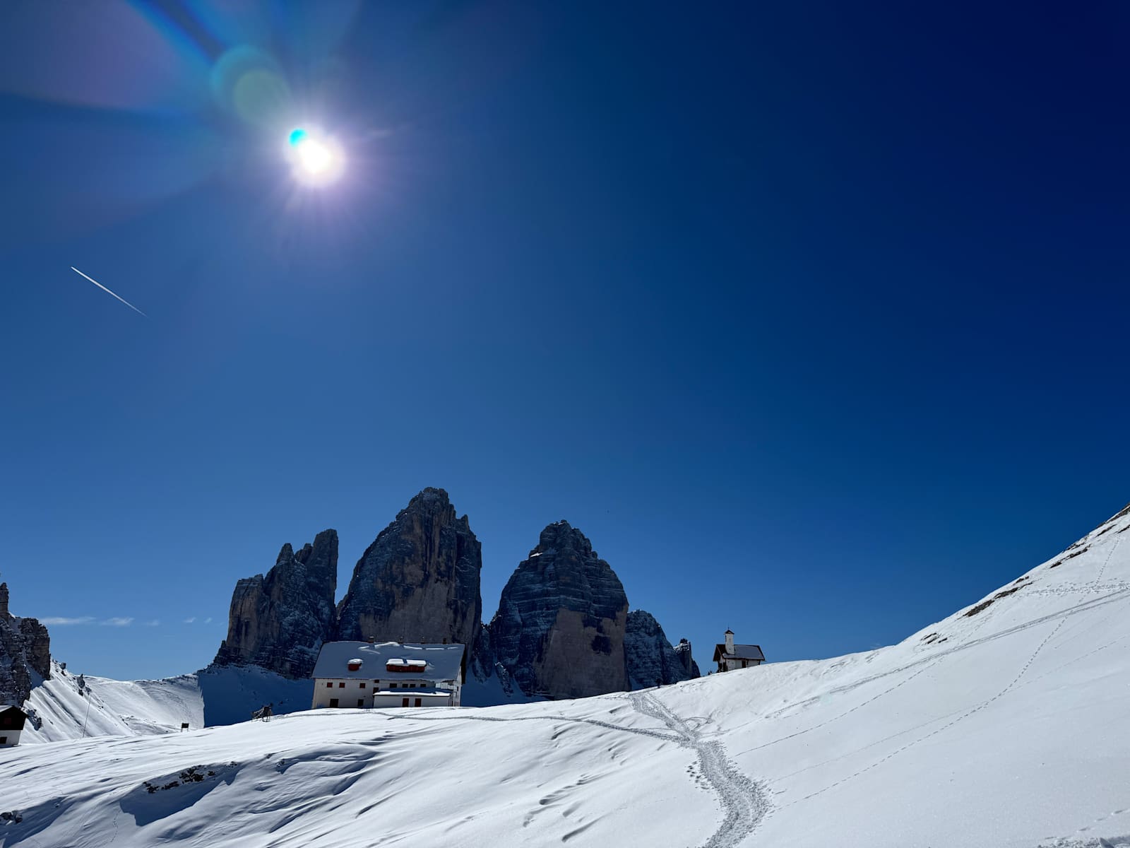 Der 2.539 m hohe Sextner Stein in den Sextner Dolomiten ist technisch sowohl mit Skiern als auch mit Schneeschuhen relativ leicht zu erreichen. Vom Gipfel genießt man einen herrlichen Blick auf die Drei Zinnen. Aufgrund der Länge sollte die Tour aber keinesfalls unterschätzt werden.