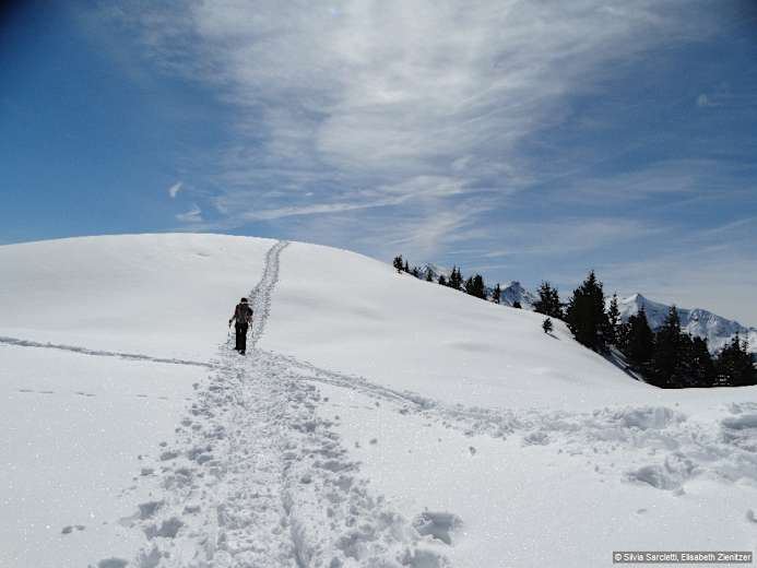 Mittelschwere Schneeschuhtour mit mäßig steilen Gegenanstiegen.