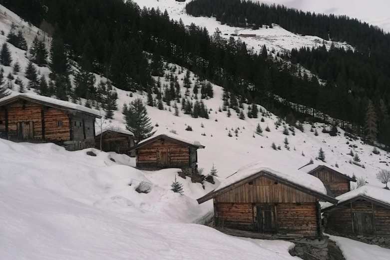 Von der Schönangeralm geht es vorbei an der Zirbenkapelle und flach weiter Richtung Süden. Gleich an der ersten Abzweigung biegt man auf der Forststraße nach links Richtung Gressenstein/Siedeljoch ab. Auf dieser Straße bleibt man, bis man zur urigen und im Winter verschlafenen Gressensteinalm kommt.