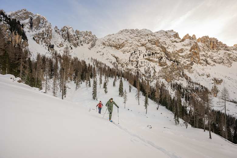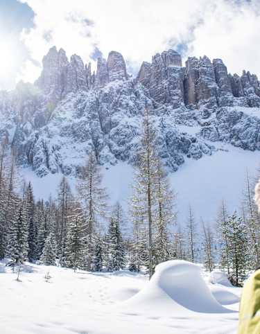 Diese Schneeschuhwanderung führt vom Karer Pass im Eggental in Südtirol durch die verschneiten Latemarwiesen am Fuße des Latemars. Begleitet von eindrucksvollen Ausblicken auf den Rosengarten und die markanten Latemar-Gipfel genießt man eine winterliche Dolomitenlandschaft von besonderem Reiz.