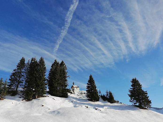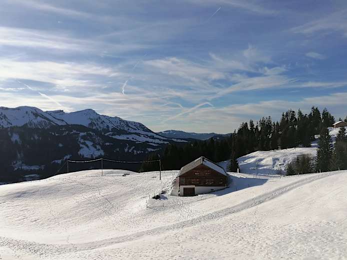 Diese Schneeschuhwanderung führt durch das bewegte Gelände von Sibratsgfäll im Bregenzerwald in Vorarlberg. Man startet die Tour beim begehbaren „Felbers schiefen Haus“ im Ortsteil Rindberg, das als Mahnmal der gewaltigen Erdrutschung von 1999 dient. Der Rundweg im Naturpark Nagelfluhkette macht an 13 Stationen, wie der „Marienkapelle“ oder der „Schiefen Tanne“, die unbändige Kraft der Natur sichtbar. Es handelt sich um eine leichte Rundtour, die im Winter nicht gespurt ist und daher ausschließlich mit Schneeschuhen begangen werden kann.