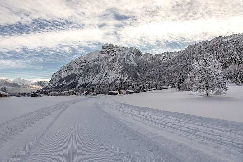 Diese kurze Schneeschuhwanderung führt durch das Gemeindegebiet von Mellau im Bregenzerwald in Vorarlberg. Man startet die Tour an der Talstation der Bergbahnen Mellau und wandert über den Ortsteil Gschwendle in Richtung Bad. Die Route verläuft anschließend zurück zum Ausgangspunkt an der Bergbahn. Es handelt sich um eine leichte Rundtour im Talbereich, die sich gut für Einsteiger eignet und die winterliche Landschaft der Region ohne große Höhenunterschiede erschließt.