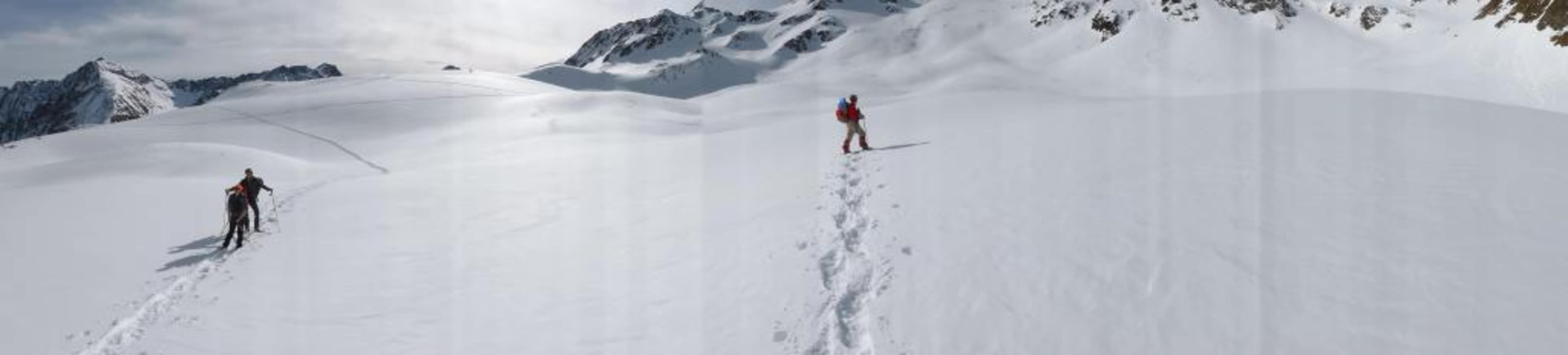 Mittelschwere Schneeschuhtour von der Pforzheimer Hütte auf den Gleirsch Rosskogel (2.944 m). Schöne Wintertour mit Schneeschuhen oder Tourenski auf einen aussichtsreichen Gipfel. Langsam ansteigend marschiert man auf dem Sonnenplateau der Pforzheimer Hütte nach Westen in Richtung Gleirschjöchl. Die schöne Gipfelkulisse mit Sonnenwänden, Zwiselbacher Grießkogel, Samerschlag und Metzerstein ist beeindruckend. Insgesamt eine lohnende Schneeschuhtour mit Ausblick auf Wettersteingebirge, Karwendel, Nordkette, Kitzbühler-, Stubaier-, Ötztaler- und Pitztaleralpen in den Stubaier Alpen in Tirol.