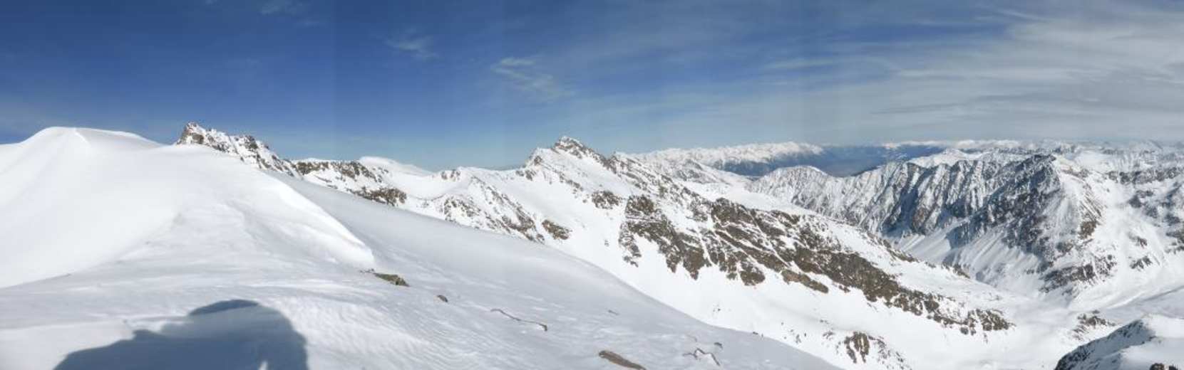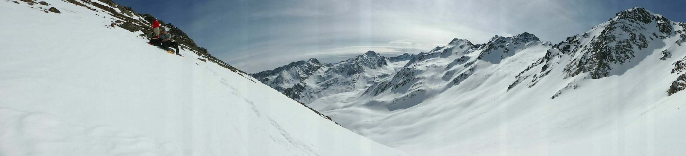 Wir kann so gut voran und ein Gipfelpanorama empfängt uns vom feinsten. Die ganzen Gebirgsketten vom Wetterstein-, Mieminger-, Karwendel-, Nordkette-, Kitzbühler-, Stubaier-, Ötztäler- und Piztäleralpen zeigten sich von Ihrer schönsten Seite. Unzählige Gipfel waren zu sehen. Die Gipfel des Gleirschtals und der schöne Blick hinunter zur Pforzheimer Hütte natürlich nicht zu vergessen.