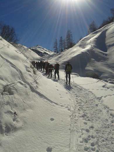 Schneeschuhwanderung anfänglich über die Seilbahn Fimbatal und an Skihängevorbei. Später öffent sich das Fimbatal und es wird einsamer.
