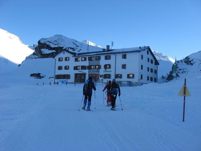 Schöne Schneeschuhwanderung an der Grenze der Schweiz zu Österreich. Ziel ist die Heidelberger Hütte (2.264 m) am Fuß des Fluchthorns in Graubünden, die von Tiroler Seite aus erreicht wird.
