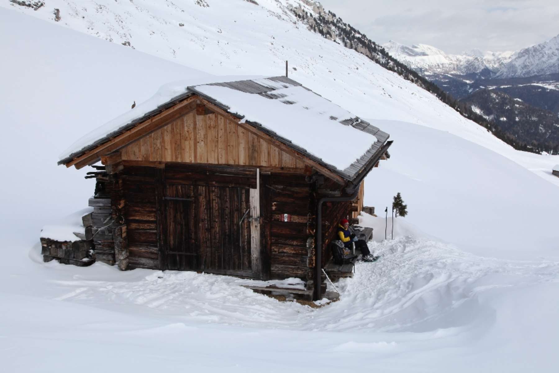 Einkehrmöglichkeit bietet die Almhütte Ütia Ciampciôs auf 2.030 Metern Höhe. (Samstag und Sonntag bewirtschaftet)