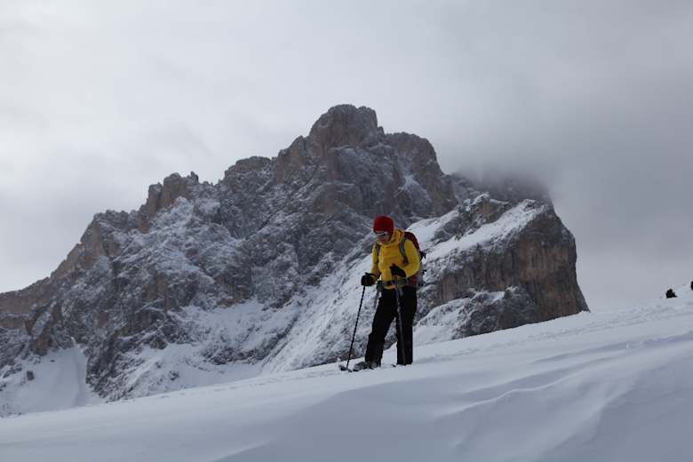 Mitten drin in der Geislergruppe, ganz nah an den Nordwänden der Dreitausender Sass Rigais und Furchetta liegt das Kreuzjoch mit atemberaubenden Tiefblicken hinunter ins Villnösser Tal. Es ist ein alter Übergang aus dem ladinischen Gadertal nach Villnöß.