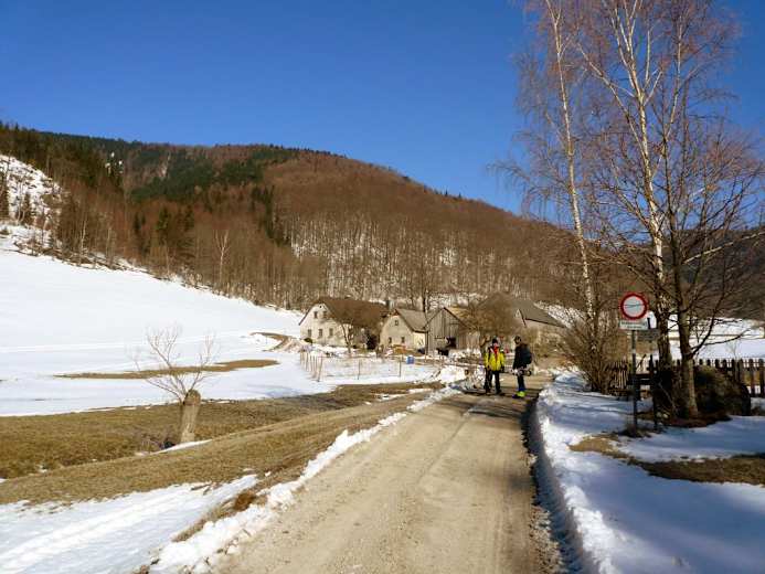 Bis Pernitz mit dem Zug von Wr. Neustadt und von dort weiter mit dem Bus zum Gasthof Leitner.