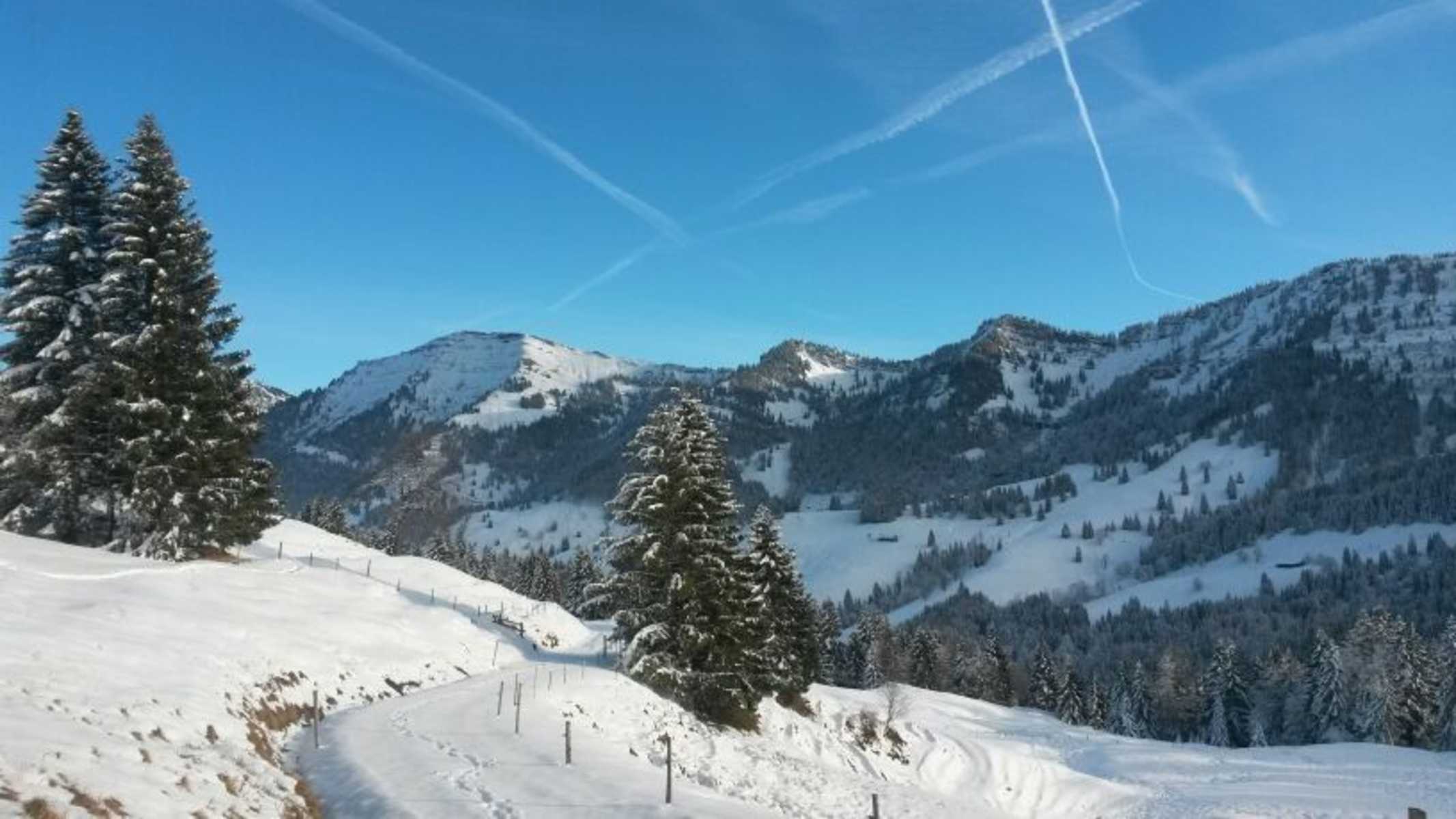 Von hier führt die Tour zunächst Richtung Alpe Hochbühl. Entweder geth man unterhalb des Schleppliftes vorbei, um den Skibetrieb zu meiden oder ein Stück entlang der Piste und durch Queren der Piste weiter zur Alphütte Häuslers Gschwend.