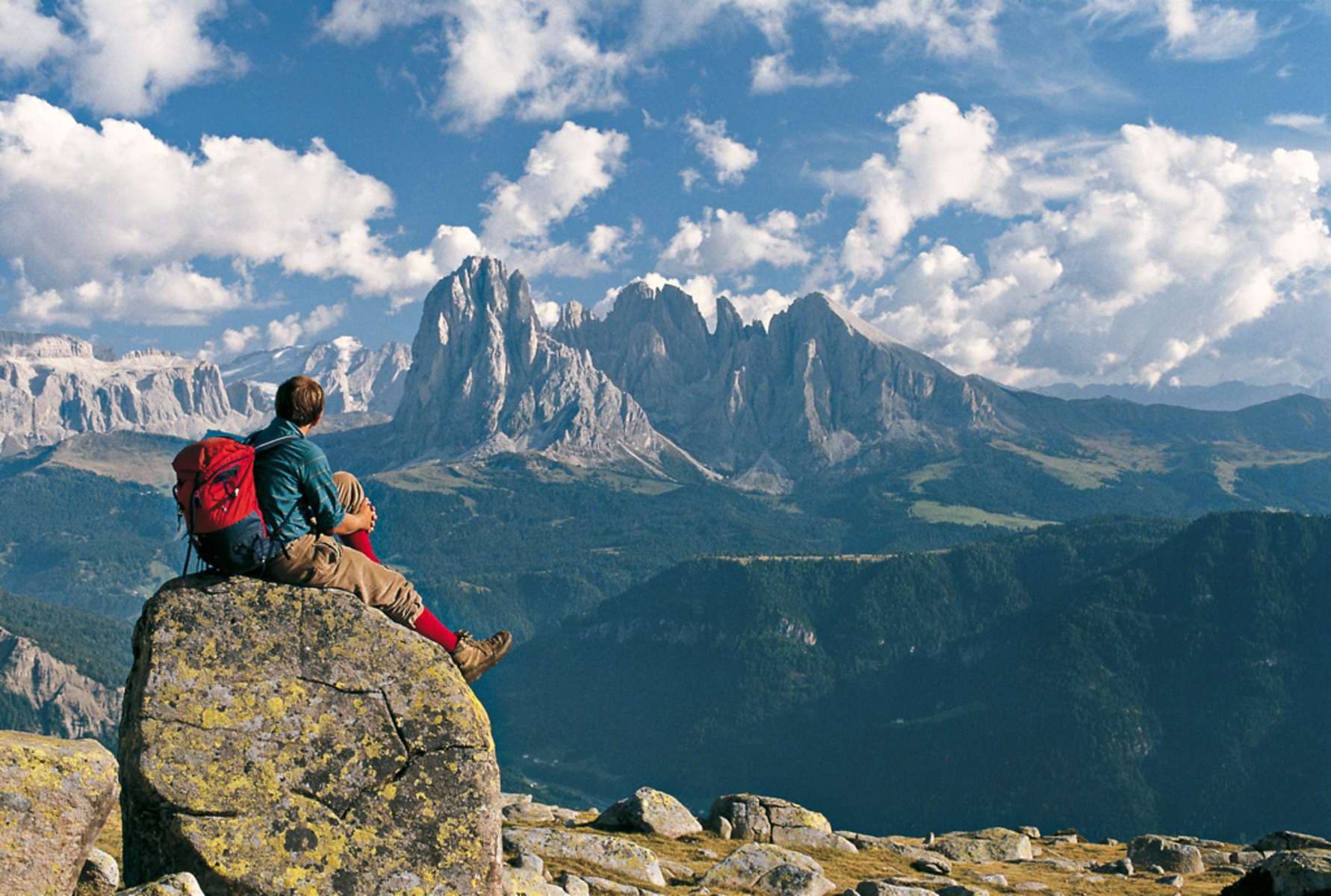 Die umfassende Schau auf die Grödner Bergwelt, Brenta, Presanella, Ortler, Ötztaler, Stubaier und Zillertaler Alpen von den Dolomiten aus wird, nein, muss jeden begeistern.