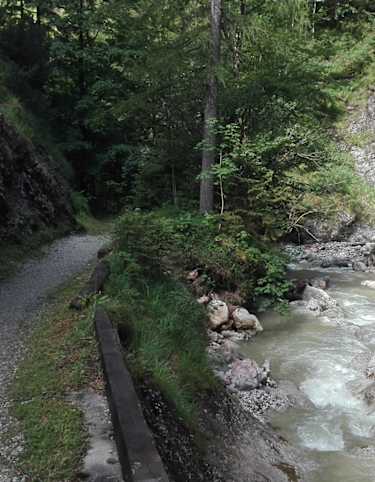 An der Abzweigung, wo man vorhin auf die Alte Hinterseer Straße abgebogen ist, geht man nun geradeaus. Die nächste Kreuzung lässt man außer Acht und wendet sich an der darauf folgenden nach rechts. Der Weg windet sich nun durch den Zauberwald zur Ramsauer Ache. Dort geht man über eine Brücke und setzt am anderen Ufer den Weg nach links fort. Man überquert eine weitere Brücke. Es geht auf dem gleichen Weg zurück bis zur Brücke über die Ramsauer Ache, wo man sich auf der gegenüberliegenden Flussseite nach links wendet und zu der Brücke wandert, die zu Beginn der Wanderung über die Ramsauer Ache geführt hat. Von dort kehrt man auf bekanntem Weg zum Parkplatz Seeklause zurück.