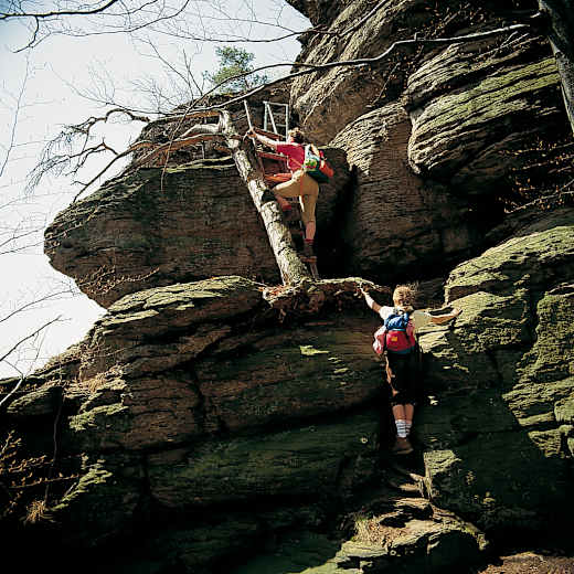 Sehr lange und etwas anstrengende, aber unschwierige Etappe auf meist gut bez. Fahr- und Fußwegen. Die Besteigung des Hohen Stein sprengt jedoch die bisherigen Anforderungen am Welterbesteig. Für diese sind trotz vorhandener Sicherungen Schwindelfreiheit, bergsteigerische Übung und ein Klettersteig-Set nötig!
