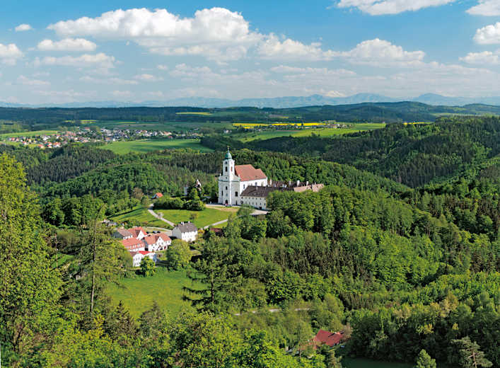 Kloster Maria Langegg im Dunkelsteinerwald mit dem Schneeberg in der Ferne. Foto: Franz Hauleitner
