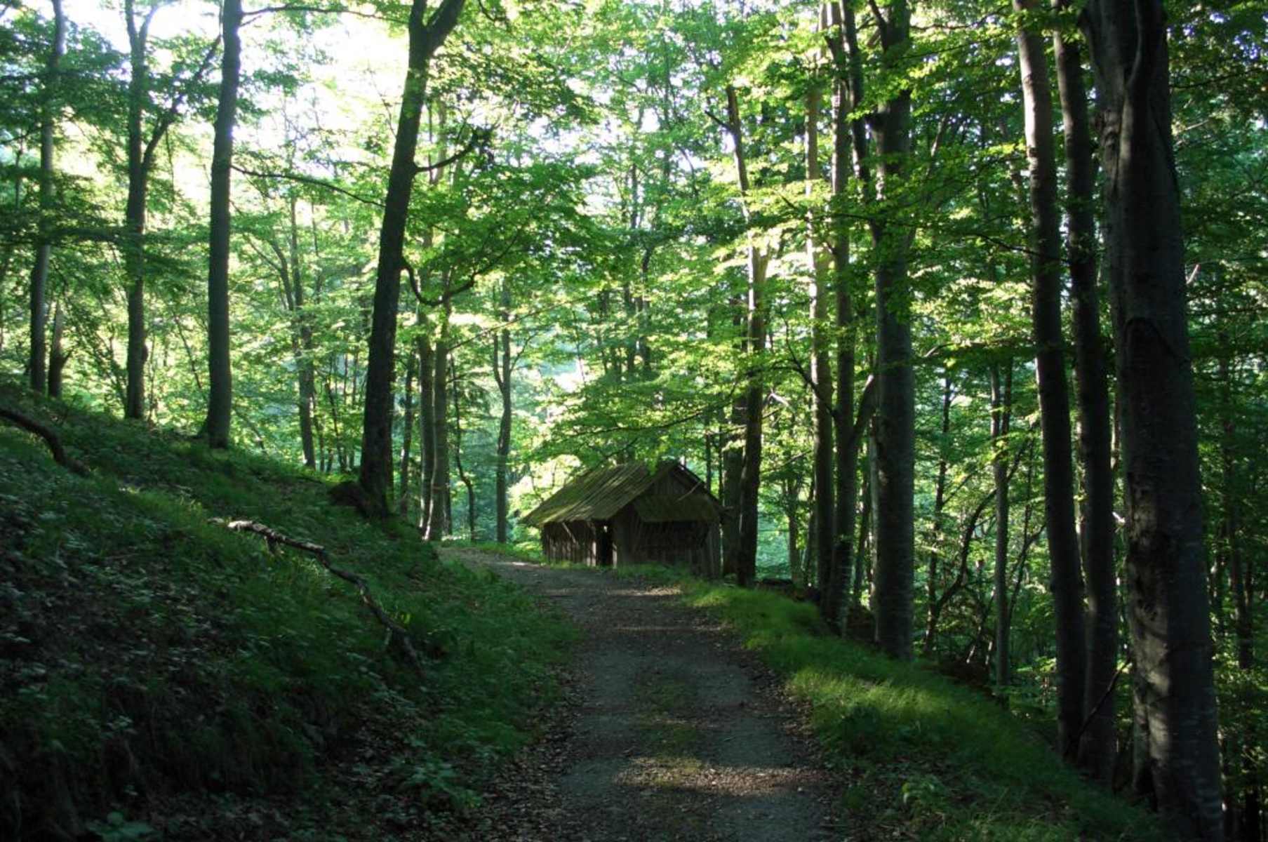 Wir bleiben am direkten (Karren-)Weg allmählich steigend weiter auf der linken Grabenseite. Nach der Überschreitung des spudelnden Mira-Baches zu einer querenden Forststraße hinauf, diese richtungsbeibehaltend kurz links weiter zur Abzweigung, die linkerhand auf breitem Waldweg zu den Wiesenflächen beim ehemaligen Anwesen "Löbelgraben" (in der Nähe Jagdhaus) führt.