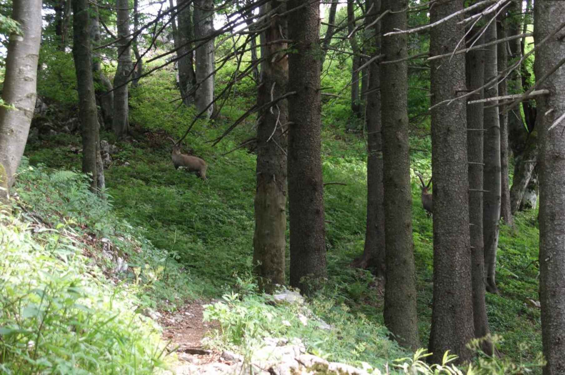 Der weitere Abstieg erfolgt nach Norden über den "Tradigister Steig" (bei Nässe unangenehm) durch anfangs steiles Waldgelände hinunter zu den freien Flächen der idyllischen Ebenwiese. Jenseits kurz zum breiten Kamm hinauf und diesen auf Karrenweg abwärts, wobei der unscheinbare "Schöngrabenspitz" passiert wird.