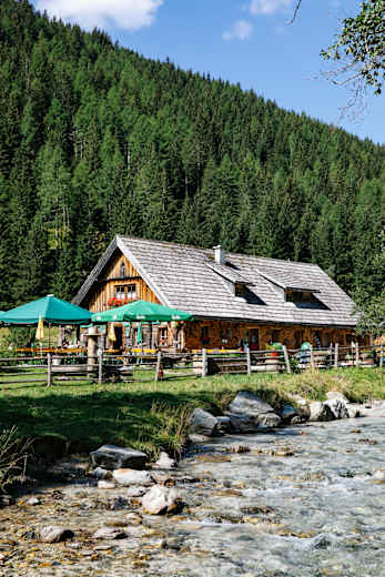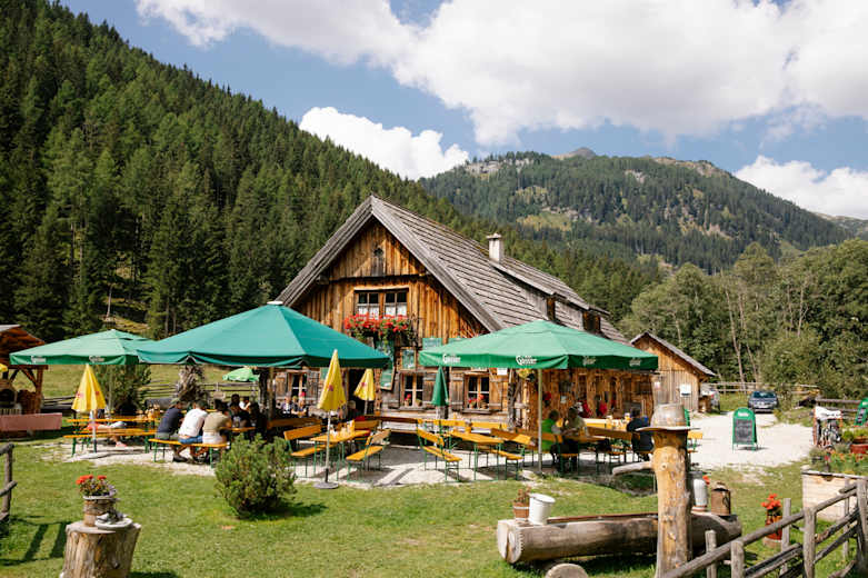 Die urige Granglerhüte liegt auf 1.320 m im idyllischen Weißpriachtal im Salzburger Lungau. Am besten erreicht man die familienfreundliche Hütte von der Jausenstation Dicktlerhütte, bis zu der man mit dem Pkw fahren kann. Von hier aus ist die Wanderung auch gut mit Kindern zu schaffen.