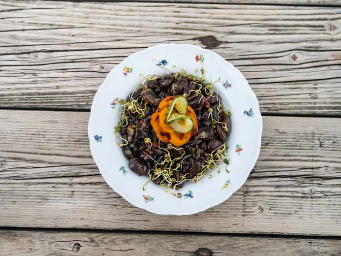 Bohnensalat mit Kernöl auf der Voisthalerhütte Foto: Bernhard Fiedler / Red Bull Media House Publishing