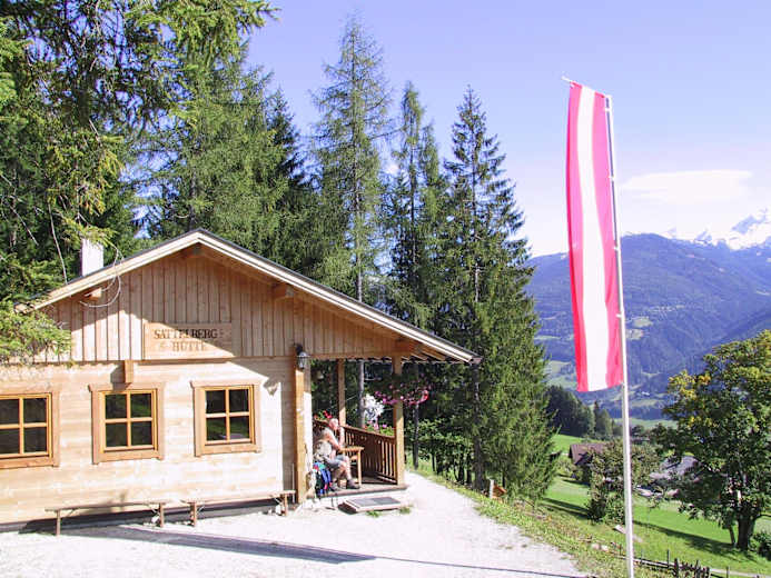 Auf der Sattelberghütte saisonale Spezialitäten und regionale Gerichte serviert. Unbedingt den hausgemachten Schoko- und Topfenkuchen probieren!