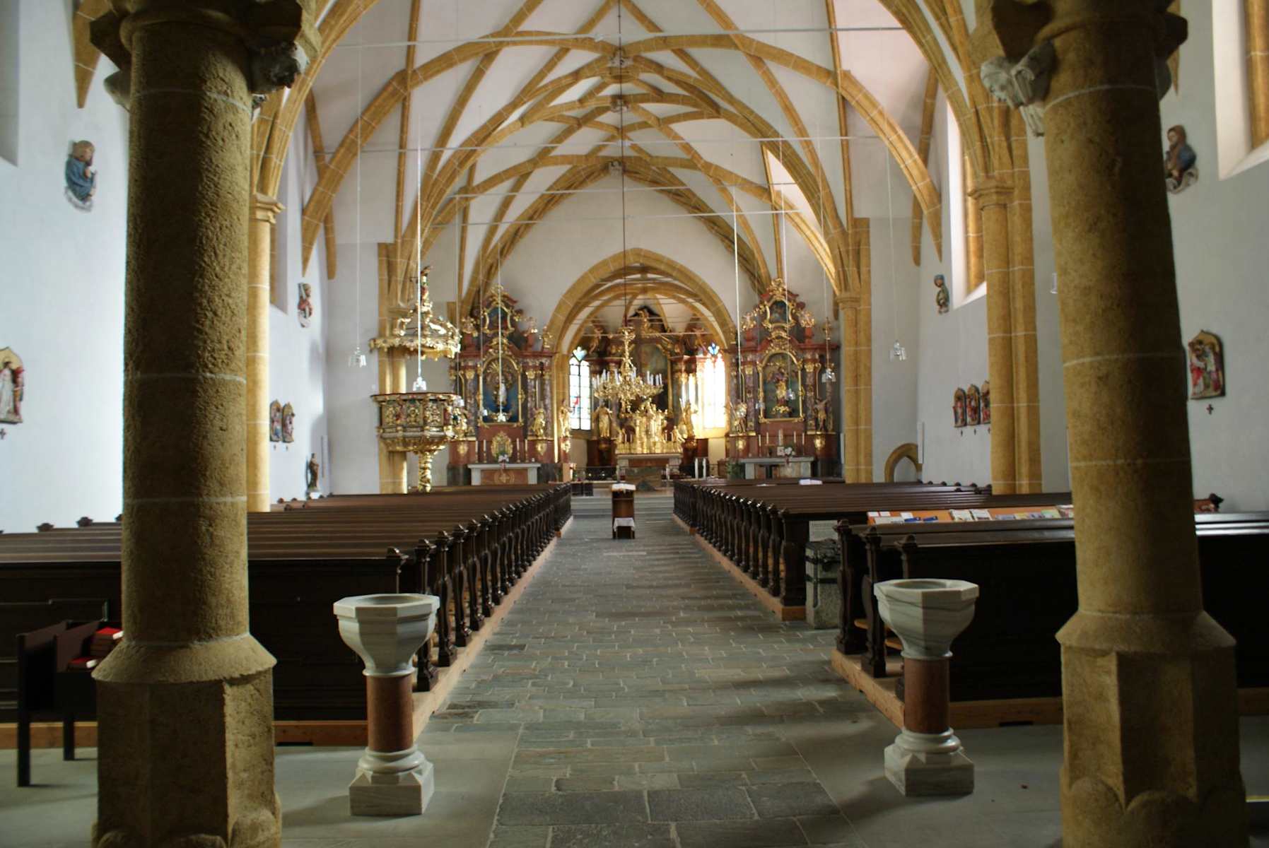 Von der Kirche geht es entlang der Bundesstraße dann auf dem Rad- und Fußweg bis kurz vor Wegscheid, wo man nach links in das Ramertal (Weg Nr. 854) hinein abbiegt. Nach ca. 500 m biegt man bei der Weggabelung rechts auf die Steinschalen bergauf in den Wald und links auf das Pretal (Weg Nr. 856) ab. Weiter geht es durch den Brunngraben hinaus bis zum Wildgatter und weiter zur Hochschwabbundesstraße im Salzatal.