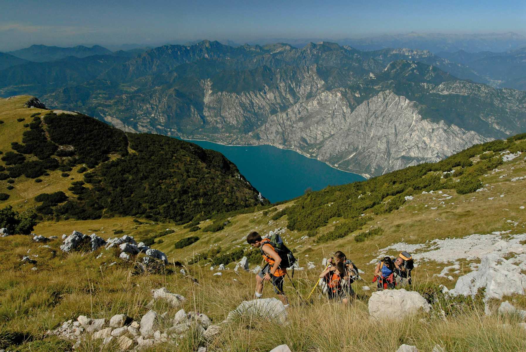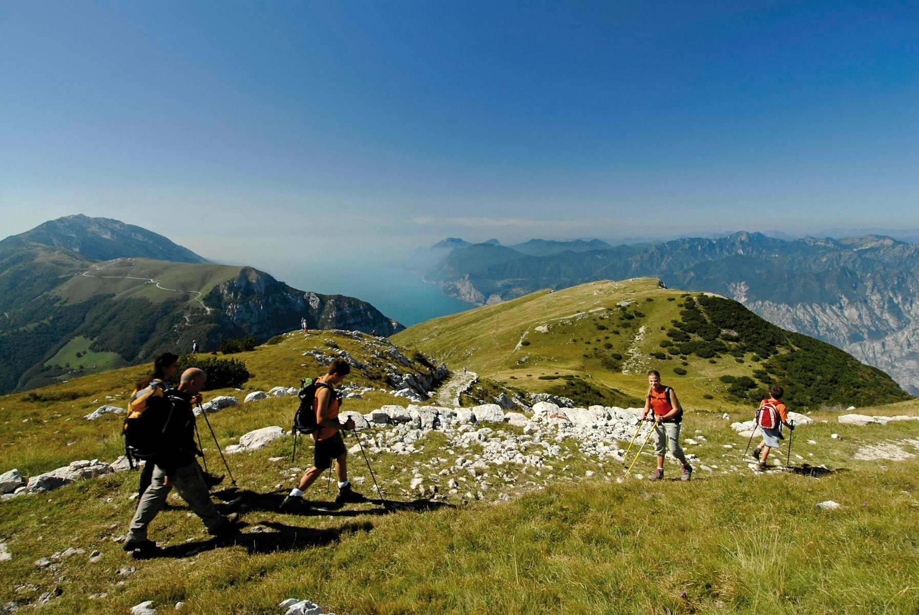 Die Wanderung führt über den legendäre Saumpfad Nr. 654, auf dem man nun über die Westflanke des Monte Baldo bis ans Ostufer des Gardasees absteigt.