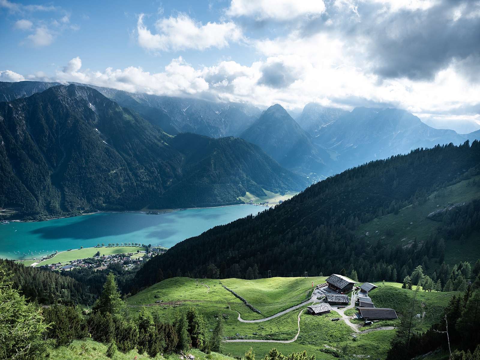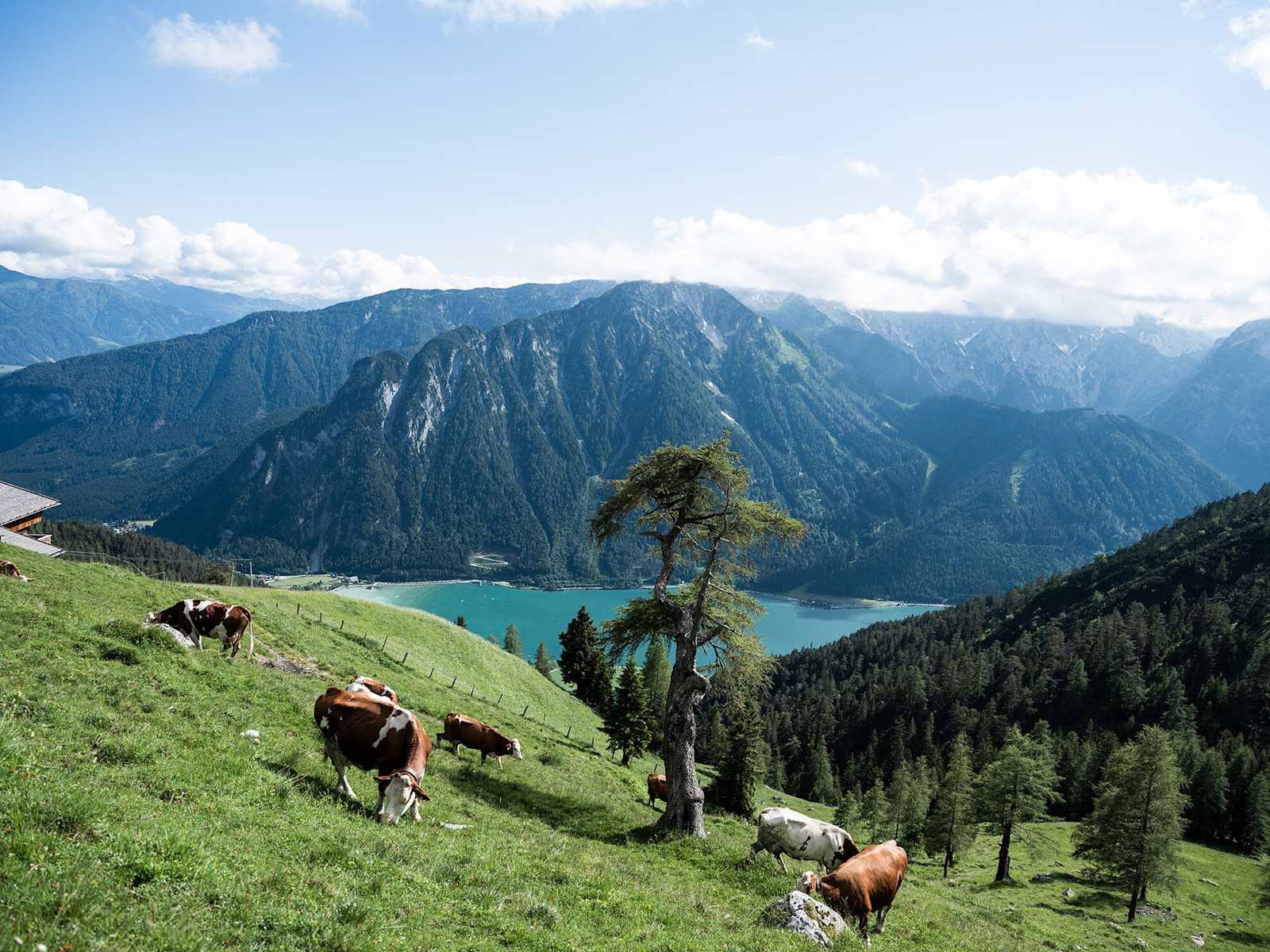 Wanderung zur Dalfaz Alm im Rofan Foto: Philipp Horak / Red Bull Media House Publishing Weide mit Aussicht - Kühe bei der Dalfalz Alm Foto: Philipp Horak / Red Bull Media House Publishing Die urige Dalfaz Alm oberhalb des Achensees Foto: Philipp Horak / Red Bull Media House Publishing Beliebtes Wanderziel - die Dalfaz Alm mit Blick auf den Achensee Foto: Philipp Horak / Red Bull Media House Publishing Blick auf die Dalfaz Alm, den Achensee und ins Tiroler Karwendel Foto: Philipp Horak / Red Bull Media House Publishing Aussicht von der Terrasse der Dalfalz Alm Foto: Philipp Horak / Red Bull Media House Publishing Bildergalerie (6)